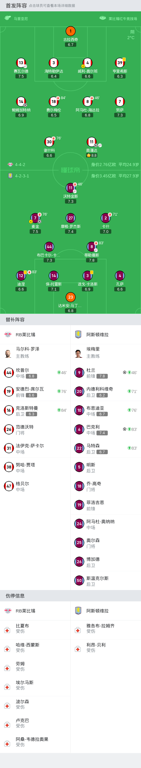 RB莱比锡在比赛中表现出色,虽然最终失利,但他们的表现也值得称赞。在比赛中,球员们拼尽全力,奋力争胜,多次制造出射门机会,展现了团队的实力和斗志。而阿斯顿维拉则凭借着稳定的防守和出色的攻击能力,最终获得了一场来之不易的胜利。